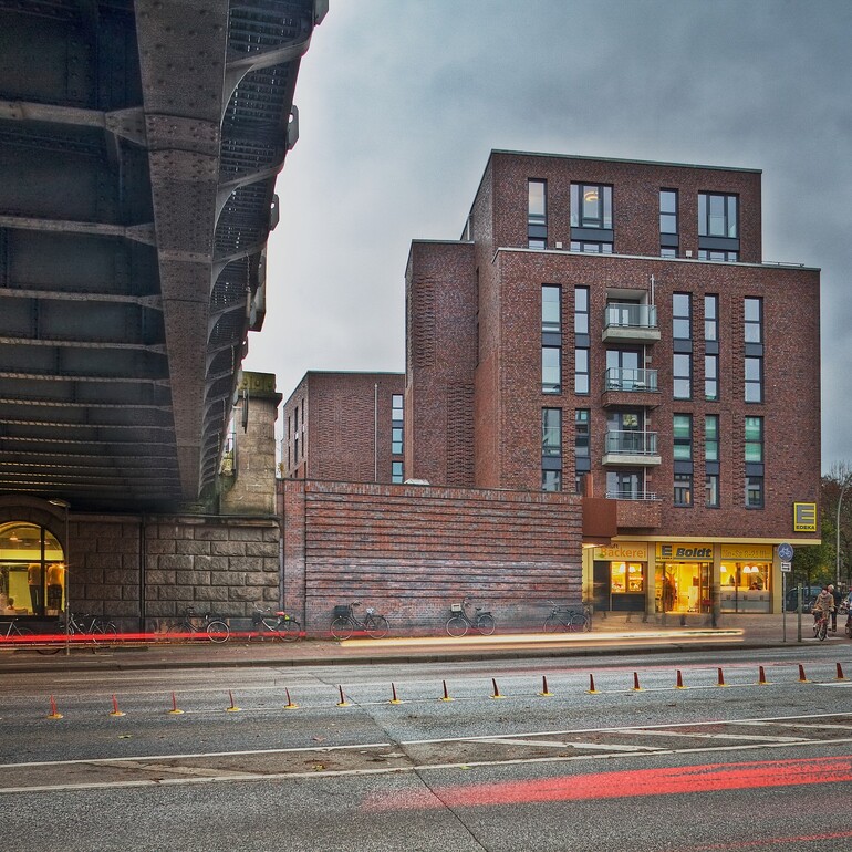 Hamburg - EimsbüttelStädtisches Hybridgebäude mit 70 Wohneinheiten inkl. 30 Studentenappartements und großflächigem Einzelhandel.
