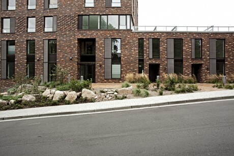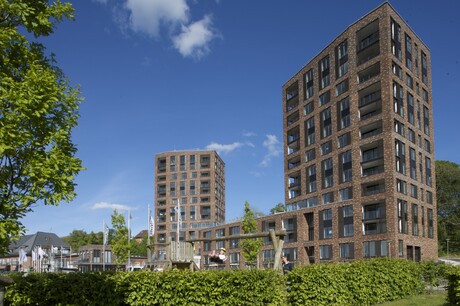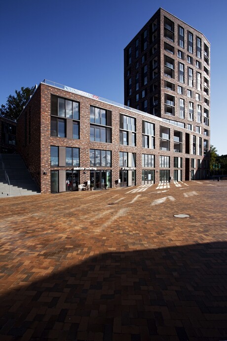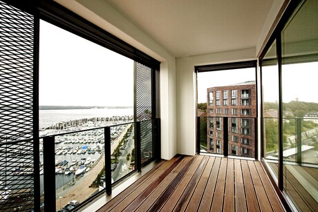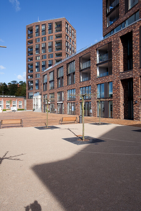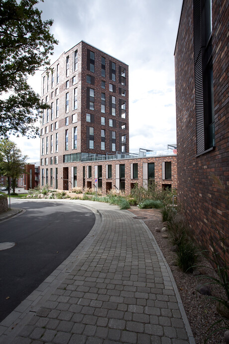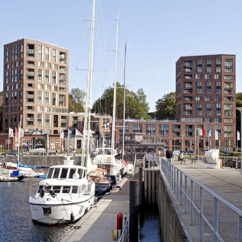 Die beiden Turmhäuser "LEE & LUV" bilden an der Flensburger Fördepromenade ein gediegenes Ensemble mit starker Identität. Die Vielfalt der Wohnungstypologie, die offenen, flexiblen Grundrisse mit ihren ausschließlich nach Westen und Süden ausgerichteten Loggien bieten den zukünftigen Bewohnern großartige Ausblicke auf die Förde mit ihrer Weite, ihrem pulsierendem Leben und auf die Stadt Flensburg. Jeweils eine gemeinschaftliche Dachterrasse auf den flachen Gebäuderiegeln laden zum Sonnenbaden und Chillen ein mit vorzüglichem Blick über Platz, Mole und Segelschiffhafen.