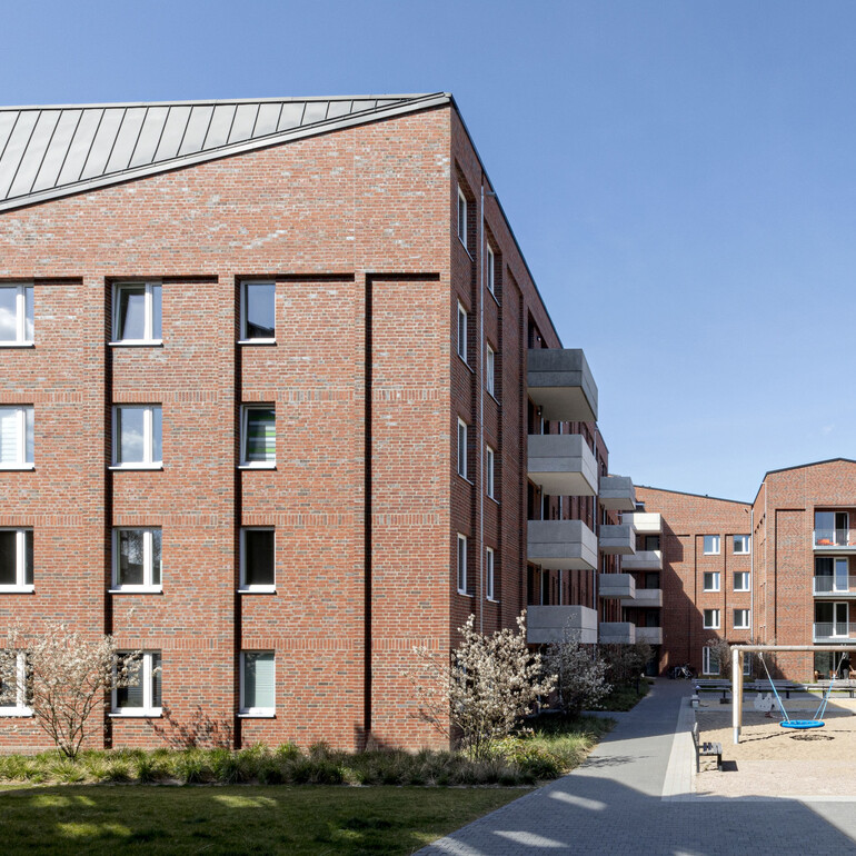 In besonderer Lage direkt am Kaufhauskanal des Harburger Binnenhafens bezieht der Entwurf sich auch formal auf die Typologie der benachbarten Klinkerspeicher sowie des unmittelbar angrenzenden denkmalgeschützten „Bornemannschen Haus“. Das Klinkermauerwerk der Fassaden bildet durch hervorspringende Eckpfeiler und so genannte Verblend-Lisenen speicherkopfartige Bereiche, in denen auch die Loggien zusammengefasst werden. Die insbesondere vom Kanal aus erlebbare Dachlandschaft schafft Anschluss an die Neubebauung der skulpturalen Wohn-Solitärgebäude, die durch den Bauherrn im ersten Bauabschnitt realisiert wurden.