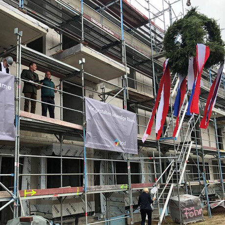 Richtfest zum Neubau von 3 Wohngebäuden mit 32 geförderten Mietwohnungen.