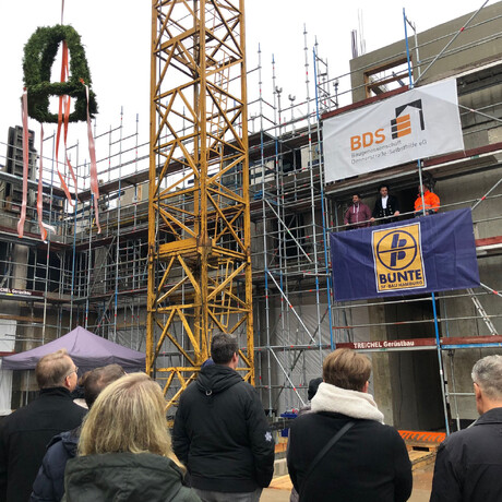 Richtfest zum Neubau vom Büro- und Gewerbekomplex in der Gaußstraße.