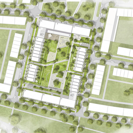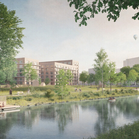 Städtebaulich-freiraumplanerischer Wettbewerbsbeitrag für 200 Wohnungen, Kita und Aktivspielplatz am Goldbekkanal in Hamburg-Winterhude mit arbos Landschaftsarchitekten