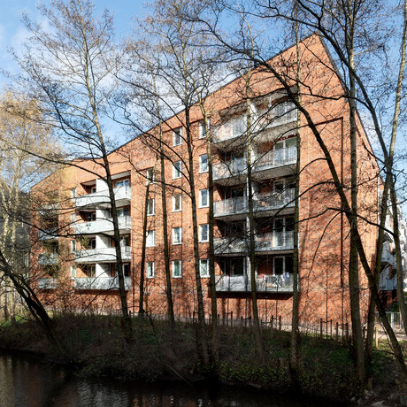 In besonderer Lage direkt am Kaufhauskanal des Harburger Binnenhafens bezieht der Entwurf sich auch formal auf die Typologie der benachbarten Klinkerspeicher sowie des unmittelbar angrenzenden denkmalgeschützten „Bornemannschen Haus“. Das Klinkermauerwerk der Fassaden bildet durch hervorspringende Eckpfeiler und so genannte Verblend-Lisenen speicherkopfartige Bereiche, in denen auch die Loggien zusammengefasst werden. Die insbesondere vom Kanal aus erlebbare Dachlandschaft schafft Anschluss an die Neubebauung der skulpturalen Wohn-Solitärgebäude, die durch den Bauherrn im ersten Bauabschnitt realisiert wurden.