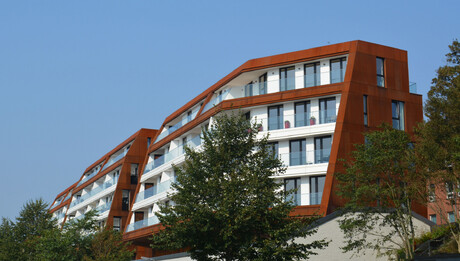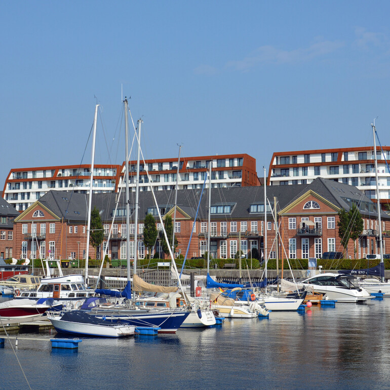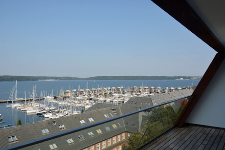 Die drei Baukörper bilden ein gediegenes Ensemble mit starker Identität. Die Vielfalt der Wohnungstypologie, die offenen, flexiblen Grundrisse mit ihren ausschließlich nach Westen und Süden ausgerichteten Loggien bieten den zukünftigen Bewohnern großartige Ausblicke auf die Förde mit ihrer Weite, ihrem pulsierendem Leben und auf die Stadt Flensburg.