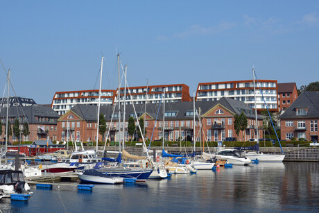 Flensburg - SonwikNeubau von 36 Eigentumswohnungen in drei Baukörpern längs der Uferlinie und errichtet auf einer ehemaligen Bunkeranlge des Marinestützpunktes.